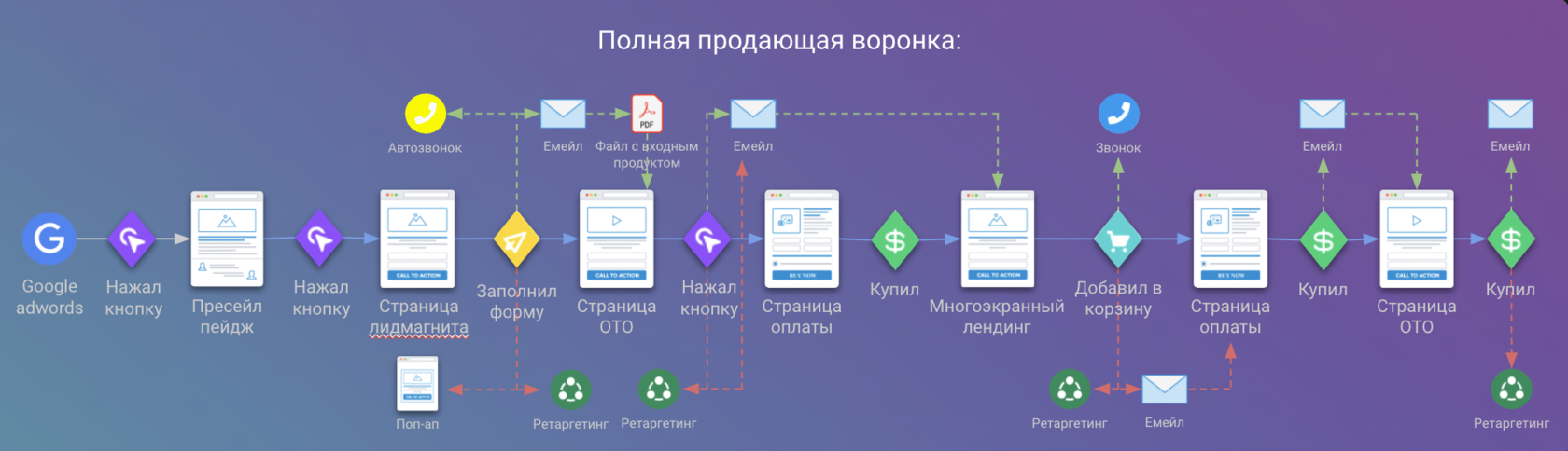 Схема — это изображение ключевых элементов и их взаимосвязи между собой. К схемам относятся чертежи, блок-схемы, графики, кривые, зависимости и т. д. Например, схема полной продающей воронки.